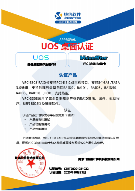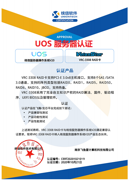 自主知識(shí)產(chǎn)權(quán)的 RAID 算法、固件、BIOS、驅(qū)動(dòng)和管理軟件 硬件元器件、PCB、貼片等國(guó)產(chǎn)化率可以達(dá)到雙九五標(biāo)準(zhǔn) 支持中標(biāo)麒麟、銀河麒麟、UOS 等國(guó)產(chǎn)操作系統(tǒng) 可支持國(guó)科、百熬、昆侖等國(guó)產(chǎn)固件 支持龍芯、申威、飛騰等國(guó)產(chǎn)處理器 可以通過篩選獲得寬溫產(chǎn)品