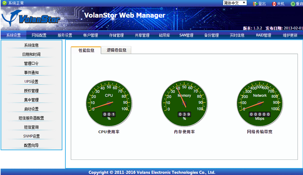 | 掉電保護 | 通過SP100檢測UPS掉電,在設(shè)定的時間內(nèi)正常關(guān)閉存儲,并可以通知其他服務(wù)器 | |||||